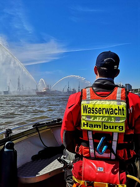Auf der Elbe - und bei Bedarf auch auf der Alster - ist unsere Wasserwacht mit der Albatros unterwegs. Mit erfahrenen Rettungsschwimmern bzw. -schwimmerinnen und einem Bootsführer mit (kleinem) Hafenpatent an Bord sichern wir insbesondere Veranstaltungen wasserseitig ab: Vom Triathlon bis zum Feuerwerk am Westfield Hamburg - Überseequartier. Sie passen auf dem Wasser auf.