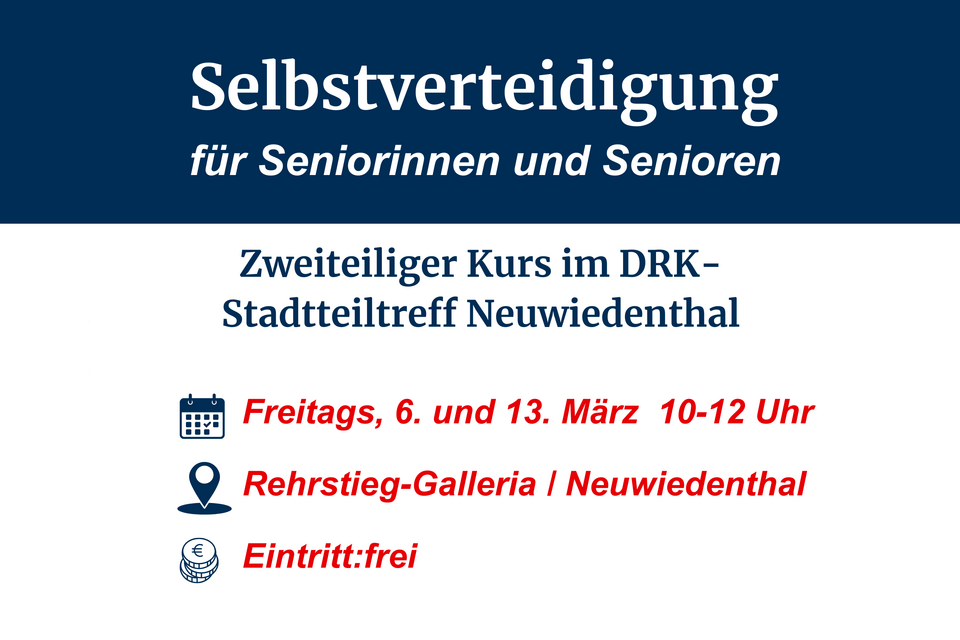 Beide Kursteile finden im DRK-Stadtteiltreff in der Rehrstieg-Galleria im Rehrstieg 22 / HH-Neuwiedenthal statt.