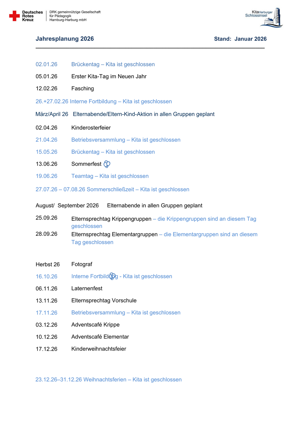 Unser Kita-Team ist montags bis freitags von 6 bis 18 Uhr für Sie und Ihre Kinder da.