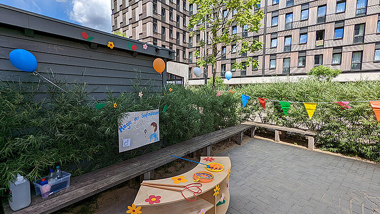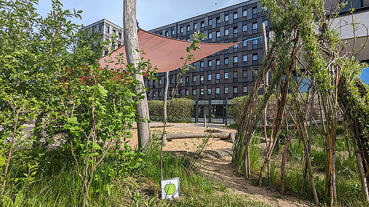 Gegenüber vom Wilhelmsburger Inselpark, direkt neben dem bunt gestreiften Gebäude der Stadtentwicklungs- und Umweltbehörde, steht unsere neue Kita WILMA.