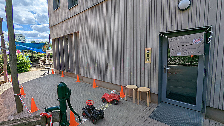 Die Kita bietet auf zwei Etagen Plätze für 80 Kinder, die in zwei festen Krippen- und zwei festen Elementargruppen betreut werden. Wir haben montags bis freitags von 6:00 Uhr bis 18:00 Uhr geöffnet. Unser Motto in der pädagogischen Ausrichtung lautet: „Großwerden mit allen Sinnen“.