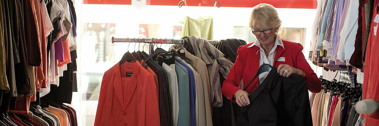Gut erhaltene, gebrauchte Kleidung gehört nicht in den Müll, sondern in die Kleiderkammern und Container des DRK oder in unseren Charity-Secondhand-Shop "Schwester Henny".